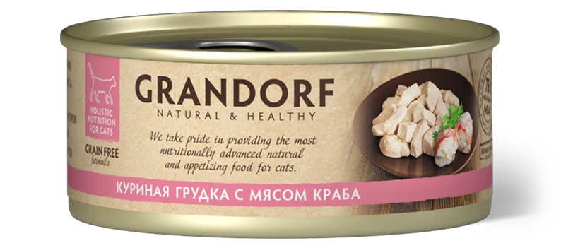 Куриная грудка (65%), Мясо краба (10%), Бульон (25%). -
