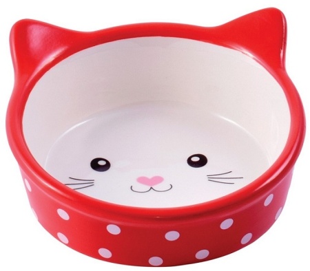 -Миска Mr.Kranch керамическая для кошек Мордочка кошки 250 мл красная в горошек (32010)