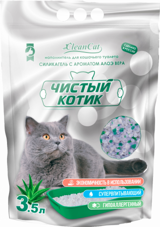 Наполнитель силикагелевый 3,5лЧистый котик колотый с ароматом алоэ вера