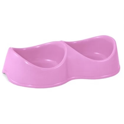Миска пластиковая двойная Бисквит, коралловая, 2*0,2л
