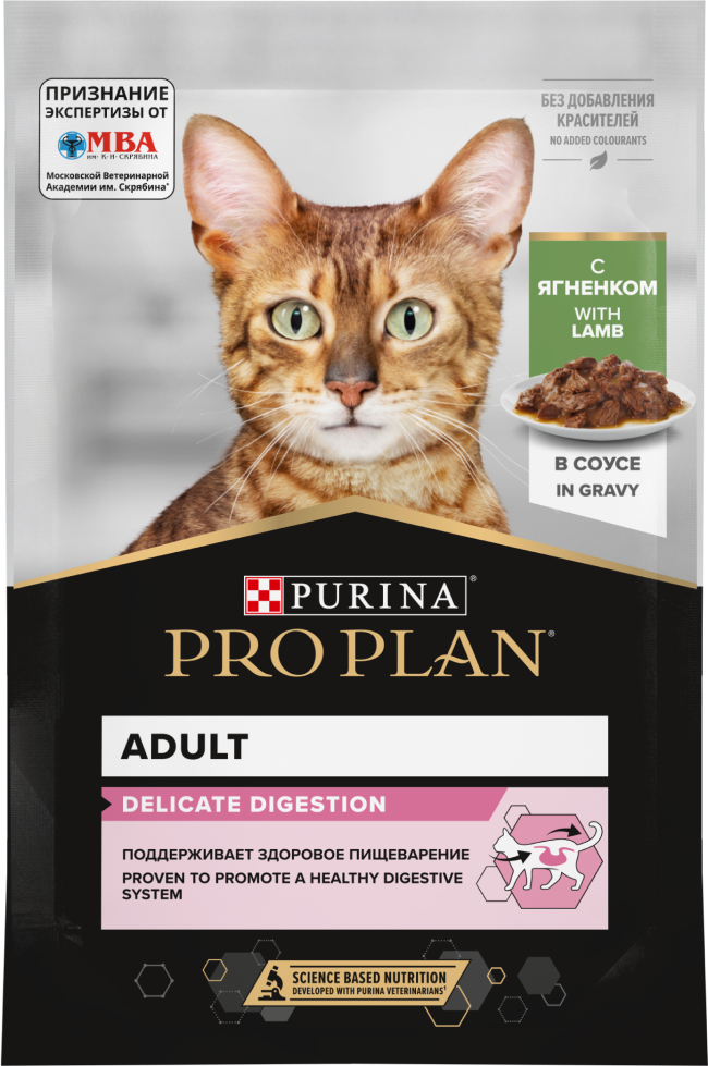 Команда квалифицированных ветеринарных специалистов разработала влажный корм PURINA® PRO PLAN® DELICATE DIGESTION для взрослых кошек с чувствительным пищеварением. Этот полнорационный корм для кошек с ягненком легко усваивается и подходит для повседневного кормления питомцев с проблемами пищеварения.