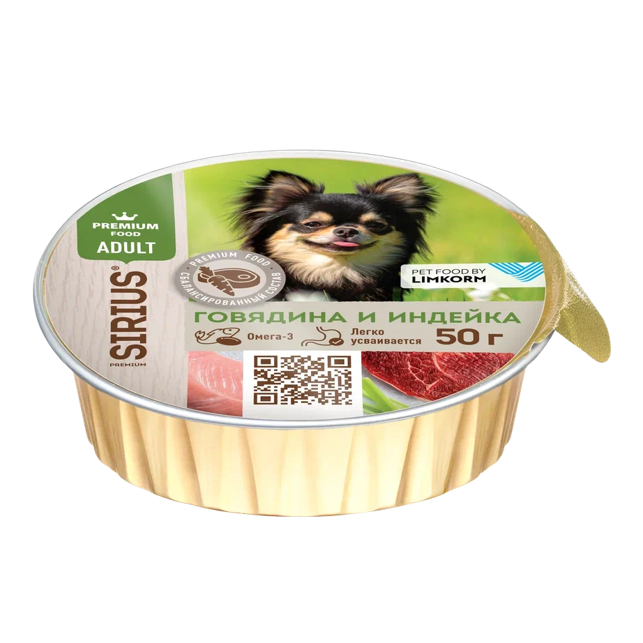 КОРМ SIRIUS КОНСЕРВЫ ДЛЯ ВЗР СОБАК МАЛ И СРЕД ПОРОД ГОВЯДИНА И ИНДЕЙКА 20*1 50г