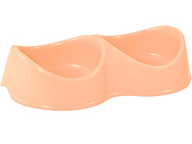 Миска пластиковая двойная Бисквит, коралловая, 2*0,2л